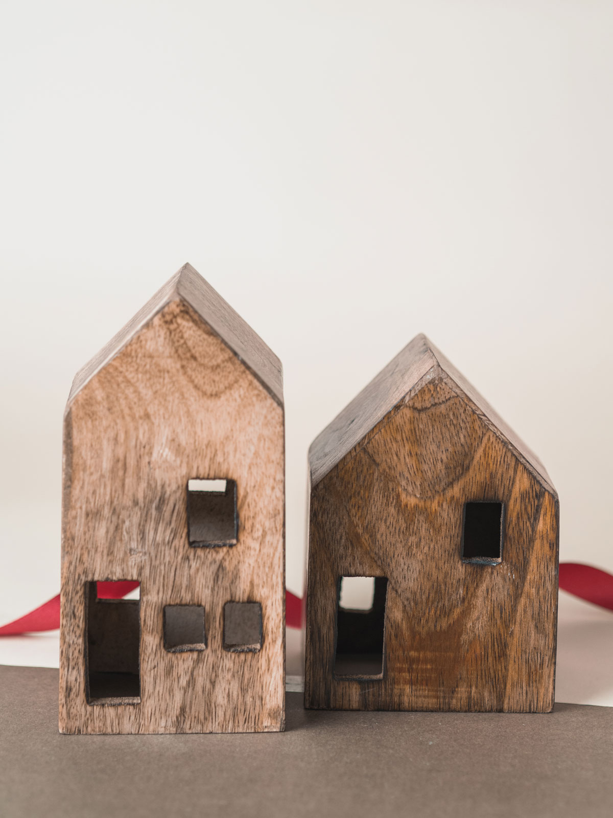 Pack de 2 casitas decorativas de madera maciza, con diseño minimalista y ventanitas talladas para crear un ambiente cálido cuando las acompañas de tus velas Catorze. Ideales para montar un pequeño rincón navideño. Disponible solo en la colección limitada de Navidad de catorzevelas.es.